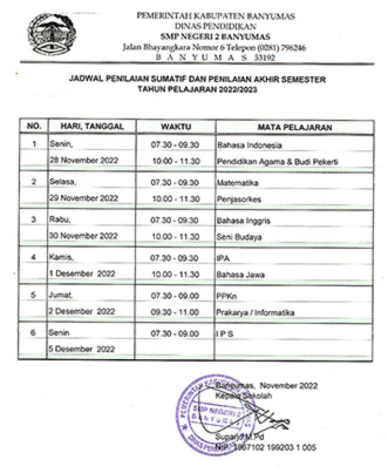 JADWAL PAS DAN TES SUMATIF TAHUN 2022/2023